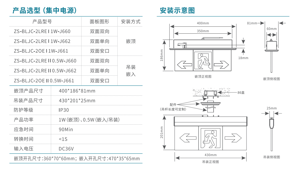 雙面雙向標(biāo)志燈(水晶吊牌款)消防應(yīng)急標(biāo)志燈 | ZS-BLJC-2LRE II 0.5W-J660 | 吊掛